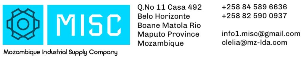 Mozambique Industrial Supply Company (MISC) - empresa moçambicana que opera no mercado desde 2021 e que se dedica no fornecimento de equipamentos e materiais industriais na área mecânica, electrica, instrumentação ou ainda seguindo as necessidades de cada cliente.