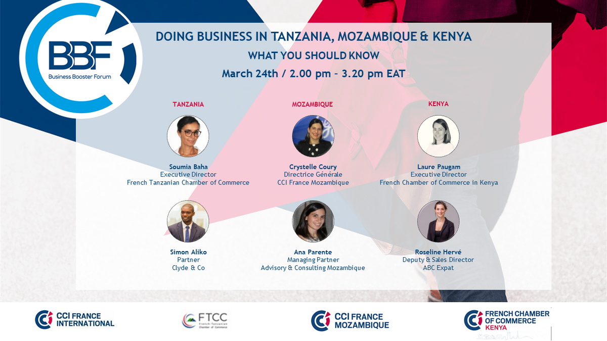 To discuss the theme "AFRIQUE | Doing Business in Tanzania, Mozambique & Kenya " from the Mozambican side on 24th March 2022 (13:00 à 14:00 GMT+0200), we will have Ana Parente, Managing Partner from Advisory & Consulting Mozambique, also a CCIFM member.