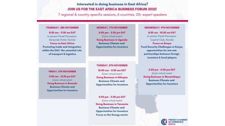 3rd to 9th November Now in its third edition, the French Chamber of Commerce in Kenya East African Business Forum brings together regional & local…