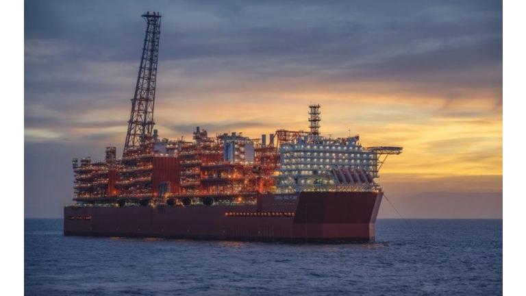 L'installation de la plate-forme flottante qui sera utilisée dans la production de gaz naturel liquéfié (GNL) au-dessus du champ gazier Coral South,…