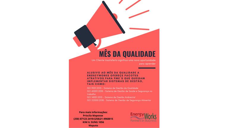 Prezado (a), É com grande prazer que anunciamos o lançamento do Mês da Qualidade. Durante o mês de Novembro a sua empresa poderá receber descontos…